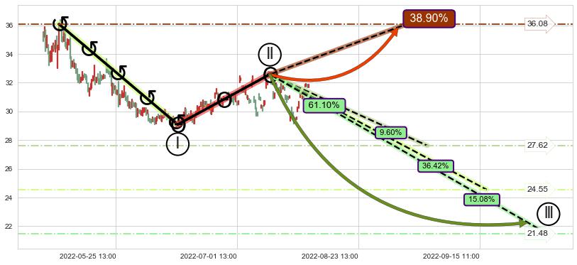 ➢ 循环浪继续向下【最低】位置(09-28:13, 21.48),匹配聚类样本比例24.69%, 可能性概率15.08%