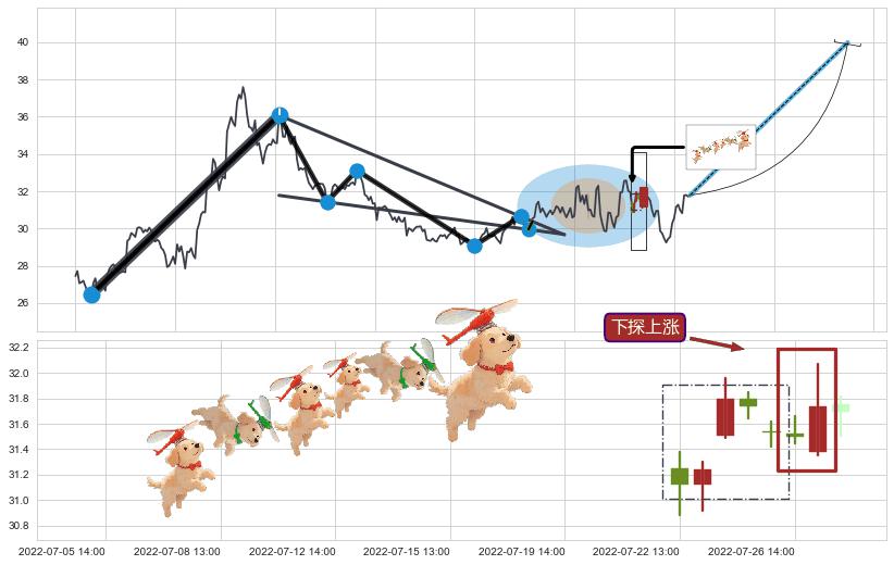 ➣ 收盘价(07-12:14: 30.25 )→回踩→第一根k线高点(07-08:14: 30.78 )