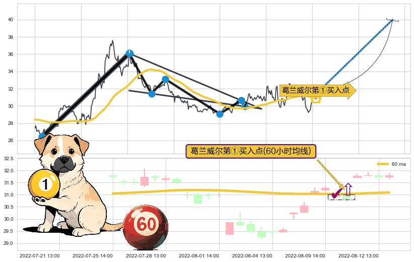 | 6 🅚:葛兰威尔第①买入点 ➕ 🌊:波浪理论下跌5浪延续反弹:猜想回调C点击穿突破,猜想持续蓄力反弹abc上涨方向(大周期趋势均值回复后小周期持续趋势跟踪) ☞ 看多信号 ⇥ 【均线】交织【图形】⇥ 综合量化分数: 63 | > |