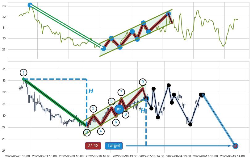 ➢ 【已确认突破】最后价格:31.79与最小【整理】第一目标价格→(08-19:14: 27.42 )相较: 下跌空间【中等】