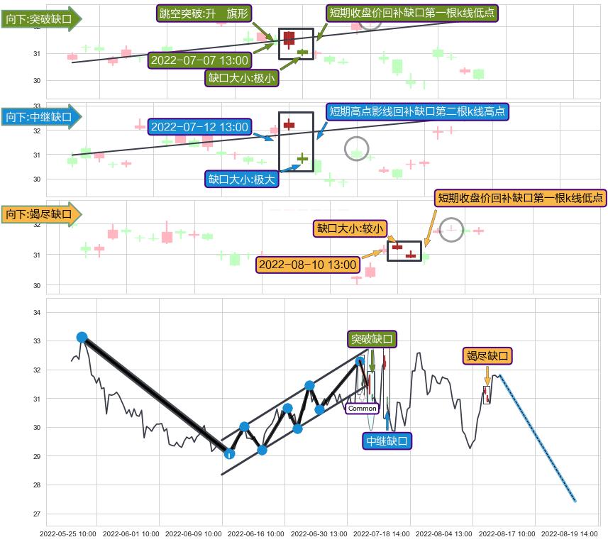 ➢ 2022-08-10 13:00形成:向下跳空【竭尽】缺口