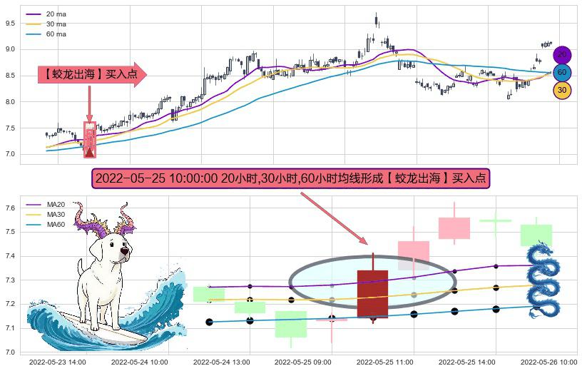 ⚀ 2022-05-25 10:00:00小时显现 20小时-30小时-60小时均线 【蛟龙出海】买入点 看多信号,后市看涨,买入