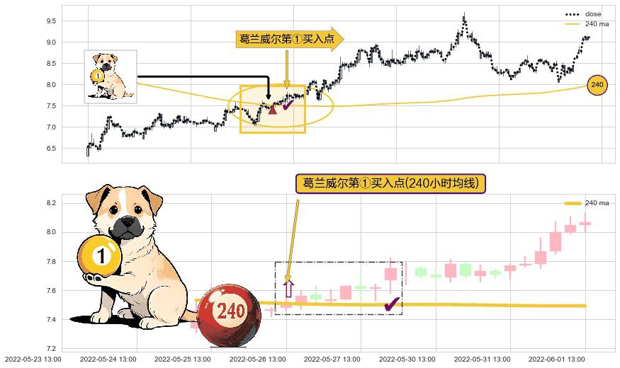 ⚀ 2022-05-26 13:00:00-小时显现 葛兰威尔均线 240小时均线 第买①入点 走势反转见底信号,后市看涨,买进信号