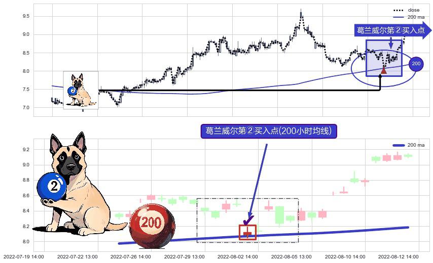 ⚀ 2022-08-02 13:00:00-小时显现 葛兰威尔均线 200小时均线 第②买入点 上升趋势的中继信号,后市看涨,买进信号