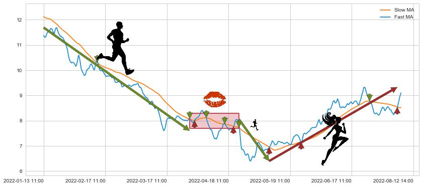 03-28 14:00至04-21 14:00 慢线与快线多次接触,存在上下穿越,有缠绕