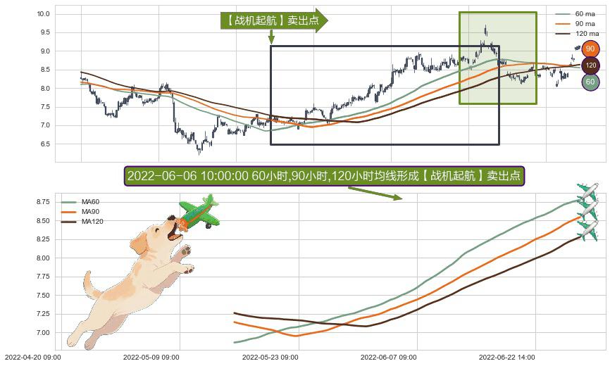 ⚀ 2022-05-13 13:00:00小时-2022-07-06 13:00:00小时显现 60小时-90小时-120小时均线 【战机起航】卖出点 看空信号,后市看跌,卖出