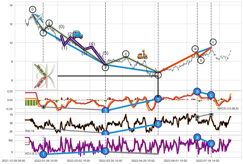 ➣ 1,3,5驱动浪MACD, RSI, KDJ走势都出现【常规背离】反转信号增强