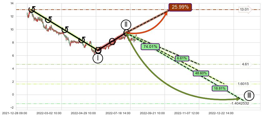 ➢ 循环浪继续向下【最低】位置(01-12:14, -1.4042532),匹配聚类样本比例25.41%, 可能性概率18.81%