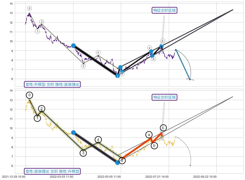 从2022-04-14 13:00至2022-06-01 10:00,共包含154个小时,阶段股价上涨1.06%,阶段股价变动位移路程比: 1 : 140