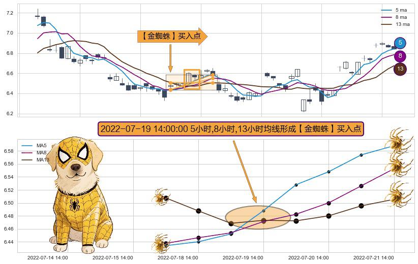 ⚀ 2022-07-19 14:00:00小时显现 5小时-8小时-13小时均线 【金蜘蛛】买入点 看多信号,后市看涨,买入