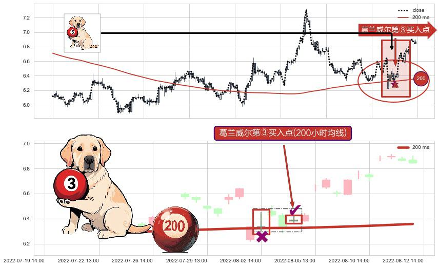 ⚀ 2022-08-04 13:00:00-小时显现 葛兰威尔均线 200小时均线 第③买入点 上升趋势的中继信号,后市看涨,买进信号