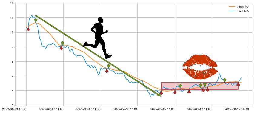 01-20 11:00至05-10 10:00 慢线与快线呈空头排列, 慢线与快线接触少,无缠绕