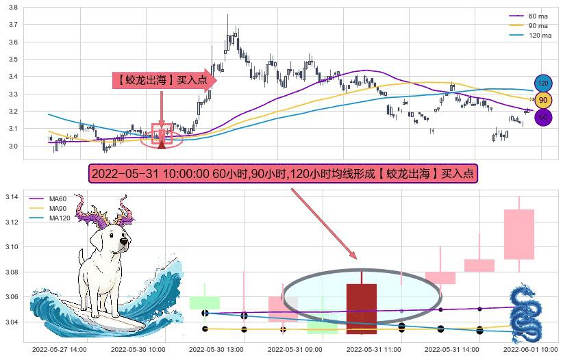⚀ 2022-05-31 10:00:00小时显现 60小时-90小时-120小时均线 【蛟龙出海】买入点 看多信号,后市看涨,买入