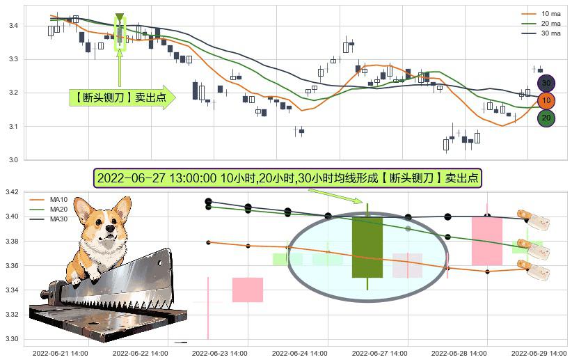 ⚀ 2022-06-27 13:00:00小时显现 10小时-20小时-30小时均线 【断头铡刀】卖出点 看空信号,后市看跌,卖出