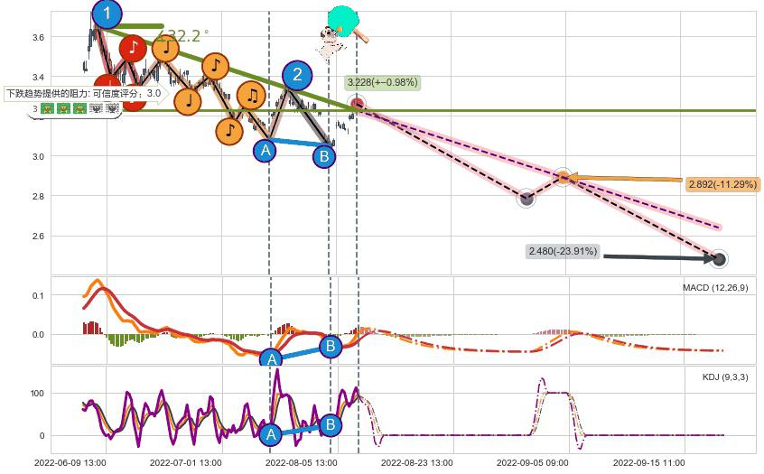➣ 预测:2022-09-02 14:00,【试探阻力】稳定目前下跌趋势的前提下,预测价格:2.892