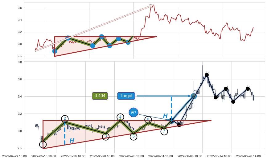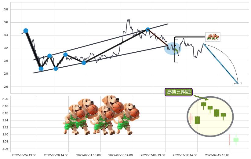 ➢ 收盘价(08-05:14: 3.170 )→再次回踩→第二根k线高点(08-02:13: 3.070 )