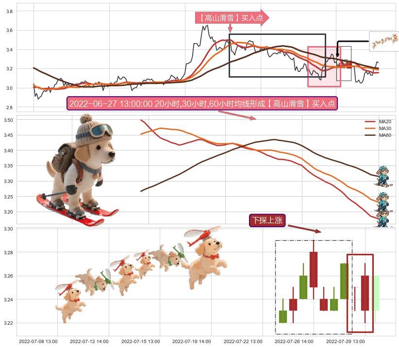 | 3 🅚:多方炮 ➕ 🎢:【高山滑雪】买入点均线组合买入点信号形成后,猜想后续下行结束,持续反弹上涨(均值回复) ☞ 看多信号 ⇥ 【均线】交织【🅚线】⇥ 综合量化分数: 51 | > |
