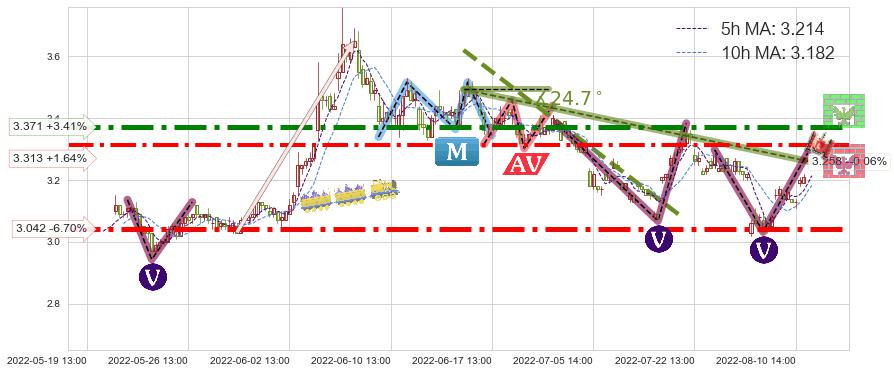 ♘ 阻力价格位3.371,可信任强度91.65%,距离最后交易2022-08-12 14:00形成的收盘价格3.260相差 +3.41%