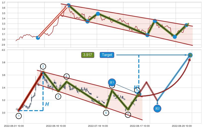 ➣ 最小中继整理涨幅→𝐇: 0.6200 (𝐇旗杆的长度:旗杆起点→顶点)
