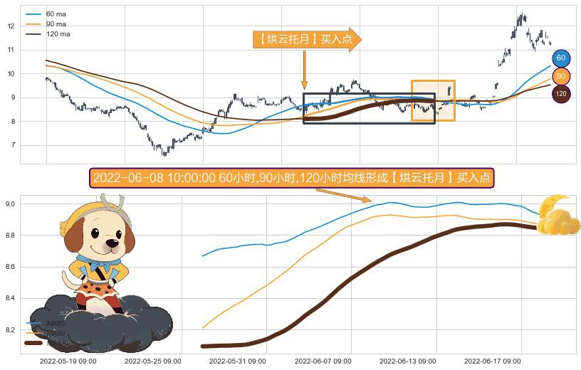 ⚀ 2022-05-26 09:00:00小时-2022-06-21 13:00:00小时显现 60小时-90小时-120小时均线 【烘云托月】买入点 看多信号,后市看涨,买入