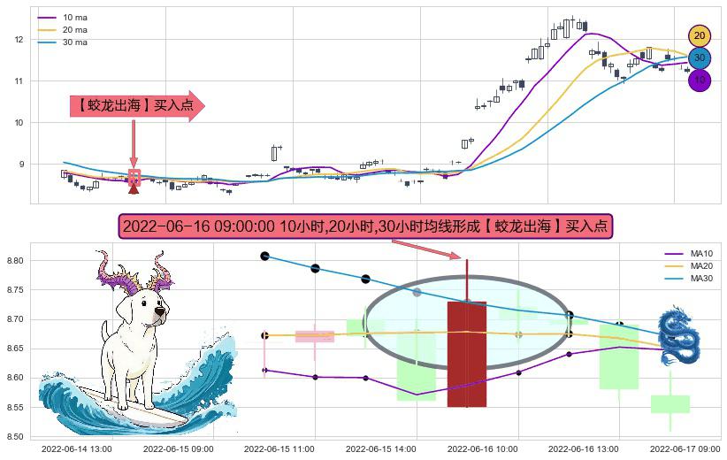 ⚀ 2022-06-16 09:00:00小时显现 10小时-20小时-30小时均线 【蛟龙出海】买入点 看多信号,后市看涨,买入