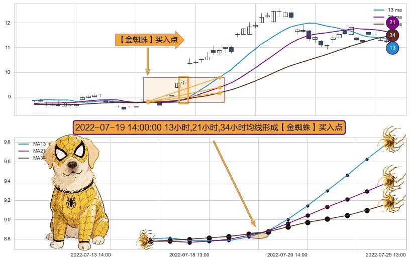 ⚀ 2022-07-19 14:00:00小时显现 13小时-21小时-34小时均线 【金蜘蛛】买入点 看多信号,后市看涨,买入