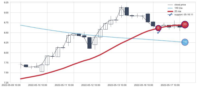 ⚃ 2022-06-16 09:00:00小时开盘价格在三条均线下收大阳线,收盘全突破均线,收盘股价上涨1.99%