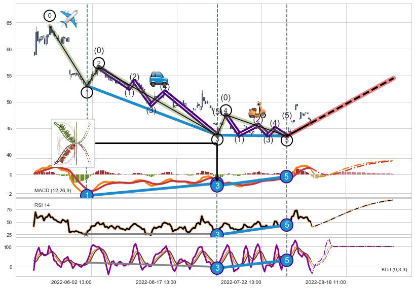 ➢ 1,3,5驱动浪MACD, RSI, KDJ走势都出现【常规背离】反转信号增强