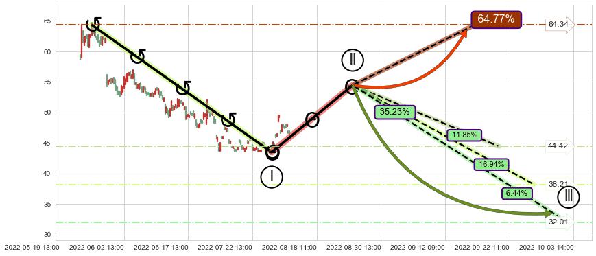 ➢ 高概率大级别循环下跌浪被破坏,反转向上(突破5浪起点)概率64.77%