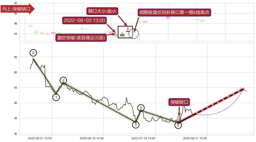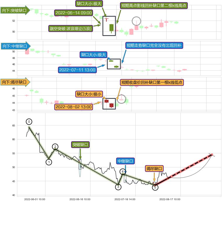 ➢ 2022-08-02 13:00形成:向下跳空【竭尽】缺口