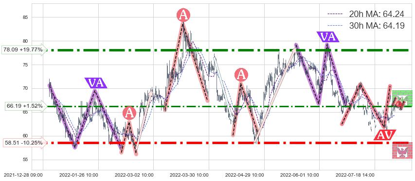 ♘ 阻力价格位66.19,可信任强度66.58%,距离最后交易2022-08-12 14:00形成的收盘价格65.20相差 +1.52%