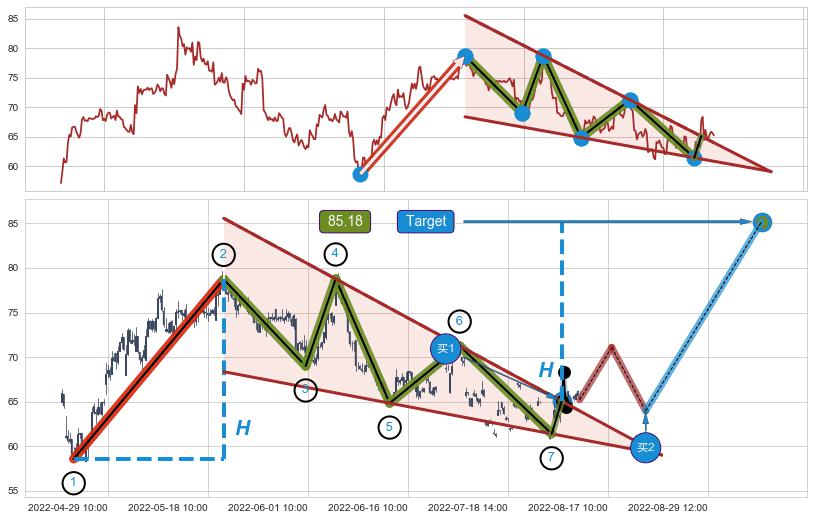 ➢ 【买1】: 激进型 买点 →(08-05:13: 65.06 )形成突破降🚩楔型【整理】形态