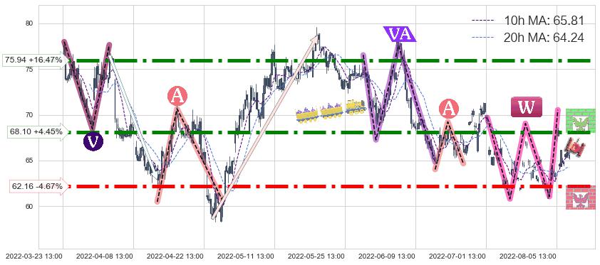 ♘ 阻力价格位68.10,可信任强度94.93%,距离最后交易2022-08-12 14:00形成的收盘价格65.20相差 +4.45%