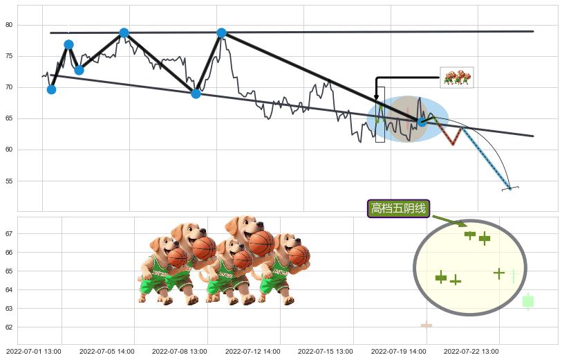 | 6 🅚:看跌(高位倒锤头)流星线 ➕ 📐:扩散三角反转猜想突破点临近,临近关键支撑位,预期下沉突破下跌 ☞ 看空信号 ⇥ 【🅚线】交织【图形】⇥ 综合量化分数: 49 | > |
