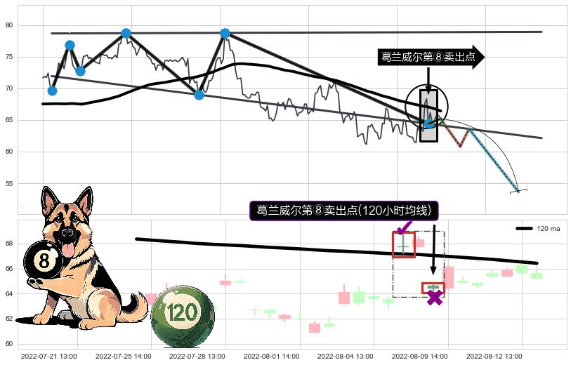 ➢ AI预测: 假定反转继续,第❸价格目标位置(08-23:11, 62.87)