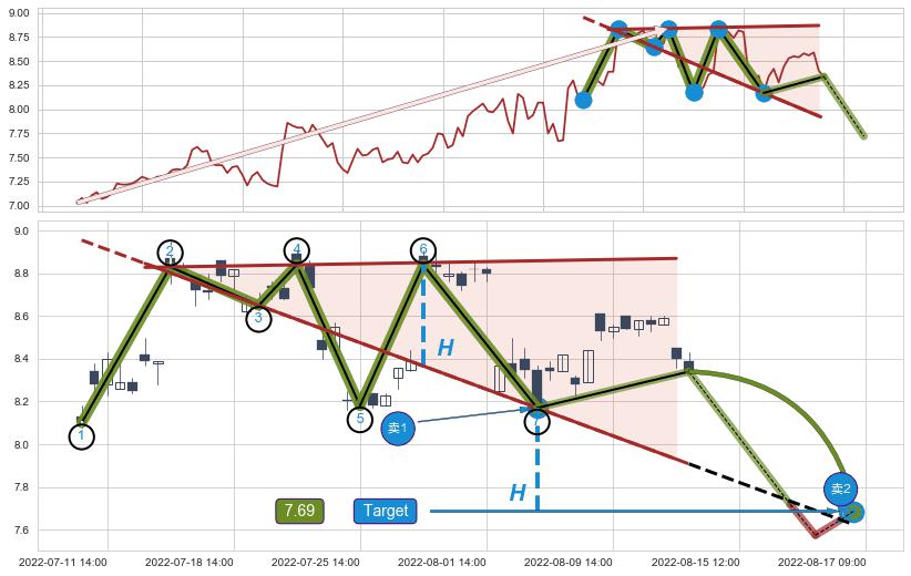 ➣ D点拟合预测价格7.57,距离最后交易收盘价格8.34相差 -9.22%