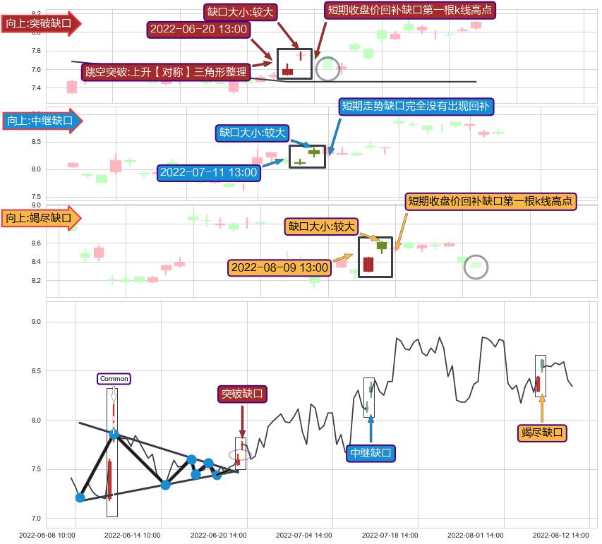 ➢ 2022-08-09 13:00形成:向上跳空【竭尽】缺口