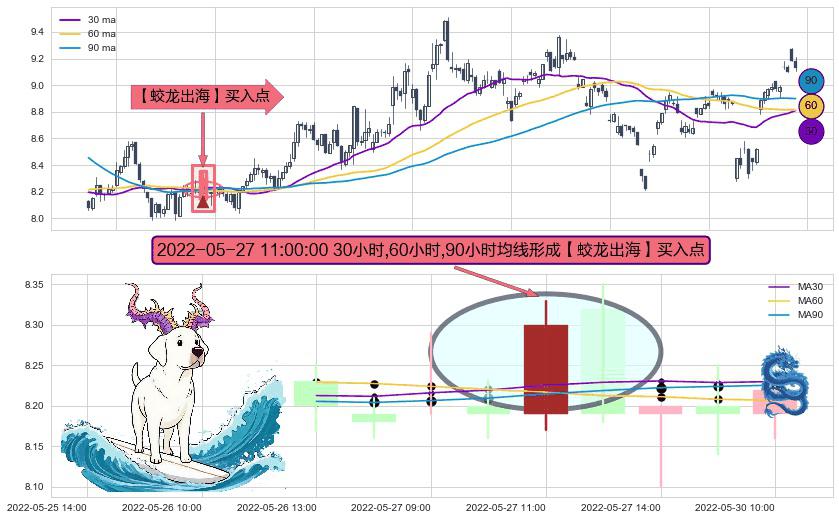⚀ 2022-05-27 11:00:00小时显现 30小时-60小时-90小时均线 【蛟龙出海】买入点 看多信号,后市看涨,买入