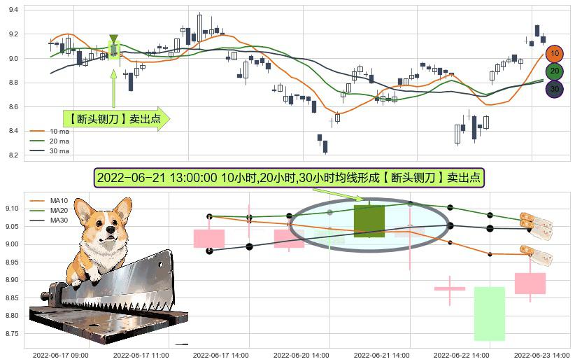 ⚀ 2022-06-21 13:00:00小时显现 10小时-20小时-30小时均线 【断头铡刀】卖出点 看空信号,后市看跌,卖出
