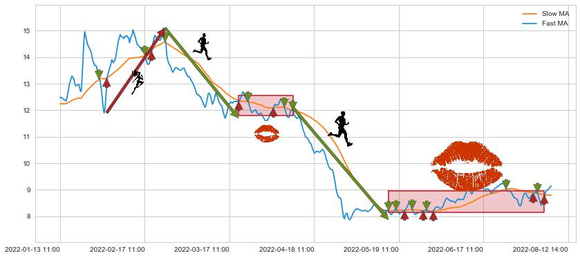 03-21 13:00至04-11 11:00 慢线与快线多次接触,存在上下穿越,有缠绕