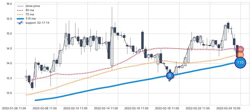 ⚂ 2022-07-12 13:00:00-小时均线向下破位,2022-08-05 13:00:00-小时重新上穿突破均线,均线支撑再次生效