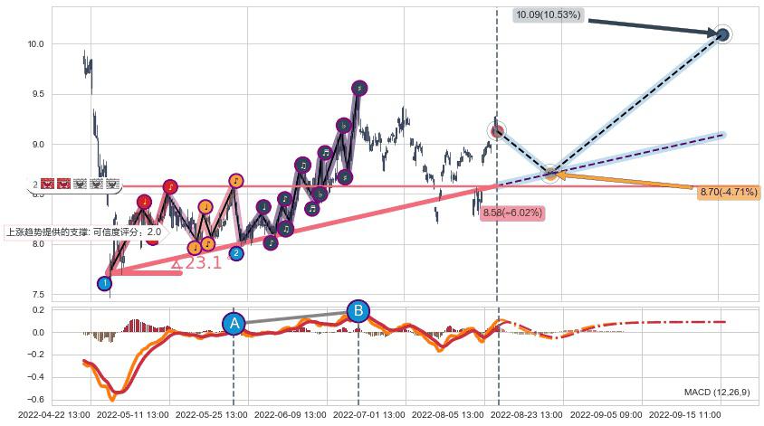 ➢ 预测:2022-08-22 12:00,【小幅回撤】稳定目前上涨趋势的前提下,预测价格:8.70