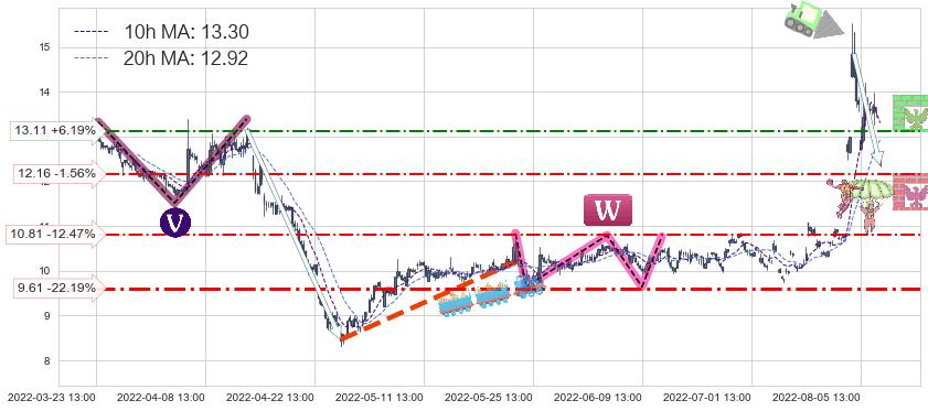 ♘ 阻力价格位13.11,可信任强度48.68%,距离最后交易2022-08-12 14:00形成的收盘价格12.35相差 +6.19%