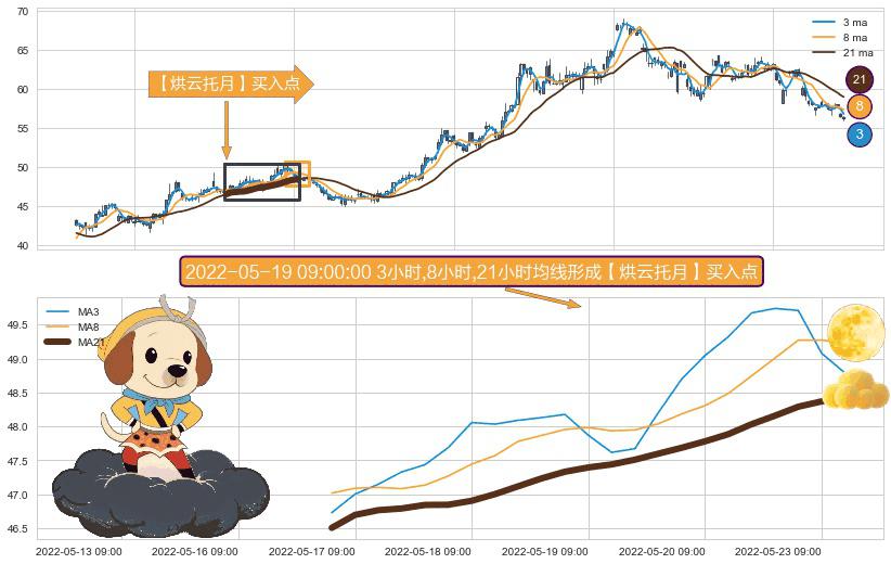 ⚀ 2022-05-16 14:00:00小时-2022-05-23 10:00:00小时显现 3小时-8小时-21小时均线 【烘云托月】买入点 看多信号,后市看涨,买入