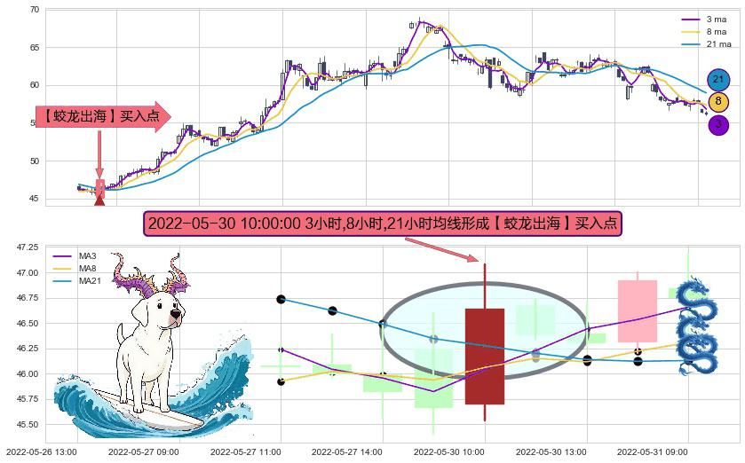 ⚀ 2022-05-30 10:00:00小时显现 3小时-8小时-21小时均线 【蛟龙出海】买入点 看多信号,后市看涨,买入