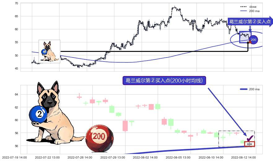 ⚀ 2022-08-12 14:00:00-小时显现 葛兰威尔均线 200小时均线 第②买入点 上升趋势的中继信号,后市看涨,买进信号