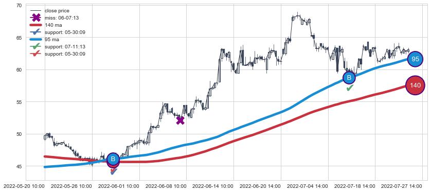 ⚄ 价格在均线获取支撑后再次向上反弹了【极短】距离, 第②买入点 支撑效果【等待验证】