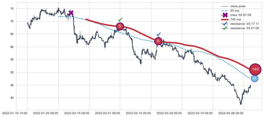 ⚀ 2022-05-31 14:00:00小时-2022-07-06 13:00:00小时显现 30小时-60小时-90小时均线 【战机起航】卖出点 看空信号,后市看跌,卖出