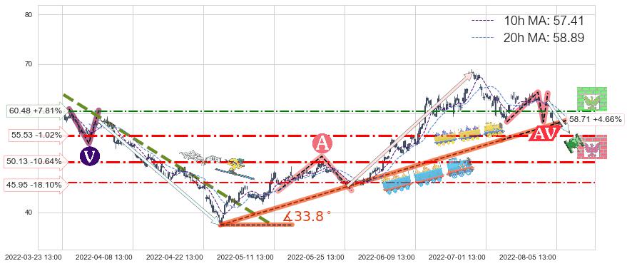 ♘ 阻力价格位60.48,可信任强度52.74%,距离最后交易2022-08-12 14:00形成的收盘价格56.10相差 +7.81%