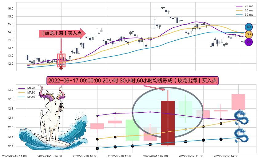 形态多维评估: ⚀ 2022-06-17 09:00:00小时显现 20小时-30小时-60小时均线 【蛟龙出海】买入点 看多信号,后市看涨,买入